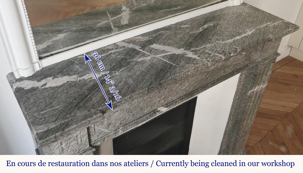 Louis XVI style fireplace with molded decoration, in green Campan marble